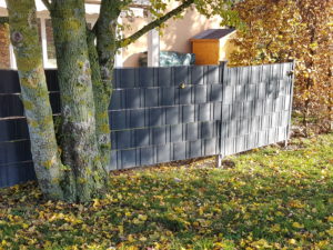 2. Grille Double Fil Léger couleur gris anthracithe avec bandes occultantes PVC